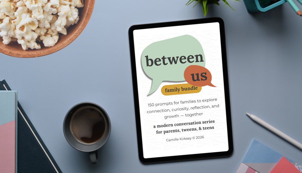 The Between Us Family Bundle is a digital conversation series for parents, tweens, and teens—designed to help families slow down, talk honestly, and stay connected in a busy world.